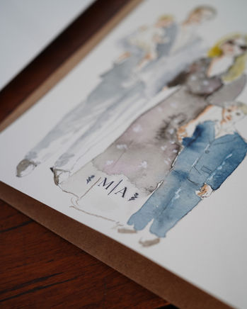 Chaque illustration est peinte à la main sur papier épais avec le regard d'un artiste plutôt que d'une caricaturiste. Les invités repartent avec leur portrait en souvenir du mariage.